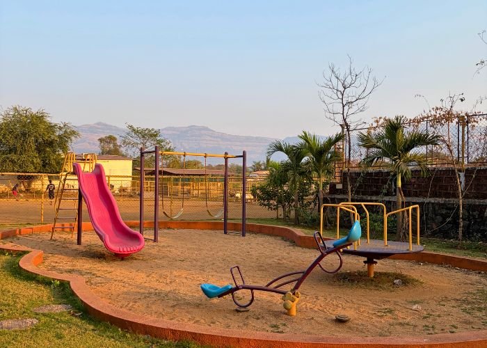 Spacious lawns designed for cricket, badminton, volleyball, and other outdoor activities, perfect for group fun and recreation.